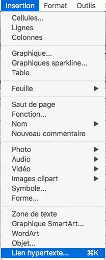 Pour ajouter un lien vers un site internet, allez dans le menu Insertion > Lien Hypertexte